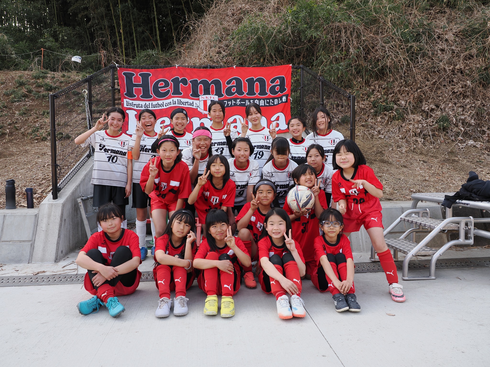 2月とは思えないほど暖かい日差しの下、エルマーナの選手たちが奮闘。